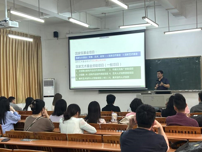 对于如何组织国家艺术基金项目申报工作,参考近年来全国申报成功的高校组织方法,陈江教授提出了完整的组织流程,为更好地指导本院老师申报项目提供了流程指引。讲座最后,陈教授还分享了个人成功申报国家艺术基金项目《岭南传统手工艺再生的创新创业人才培养》的申报情况。