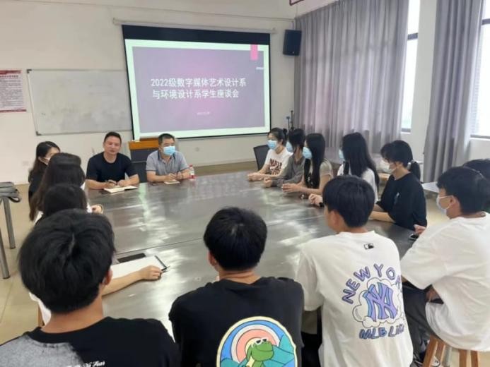 为进一步落实学科专业建设,做好学科建设顶层设计,推动学科高质量发展,提升学院教学发展水平。创意与设计学院于5月9日下午15:00在四会校区7号楼802和804分别召开学科专业期中教学学生座谈会。参加此次会议的有学院副院长熊应军、环境设计系副主任蒋明、商品设计系副主任蒋飞、视觉传达系副主任黄功翔、教学骨干施锋、教学秘书张新婷以及30名22级各班学生代表。