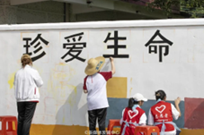 创意与设计学院团委组织学生志愿者对墙壁进行设计和绘画,让墙壁展现出新时代乡村的生机和朝气,为宣传禁毒思想贡献青春力量。