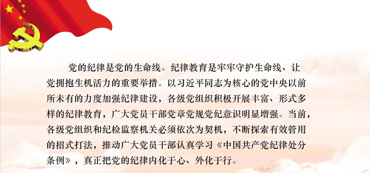 此次会议全体党员认真学习了新修订《中国共产党纪律处分条例》。会议特别指出,作为新时代的青年党员,我们有必要深刻学习党的纪律处分条例,精准掌握党的纪律尺度;通过学习党纪,明确前进方向,巩固信仰基础;在理解党纪的过程中,严格遵循纪律,明确行为规范;将纪律和规矩内化为政治意识、思想意识和行动上的自觉遵循;积极学习党的纪律和作风,努力成为一名符合标准的共产党员。