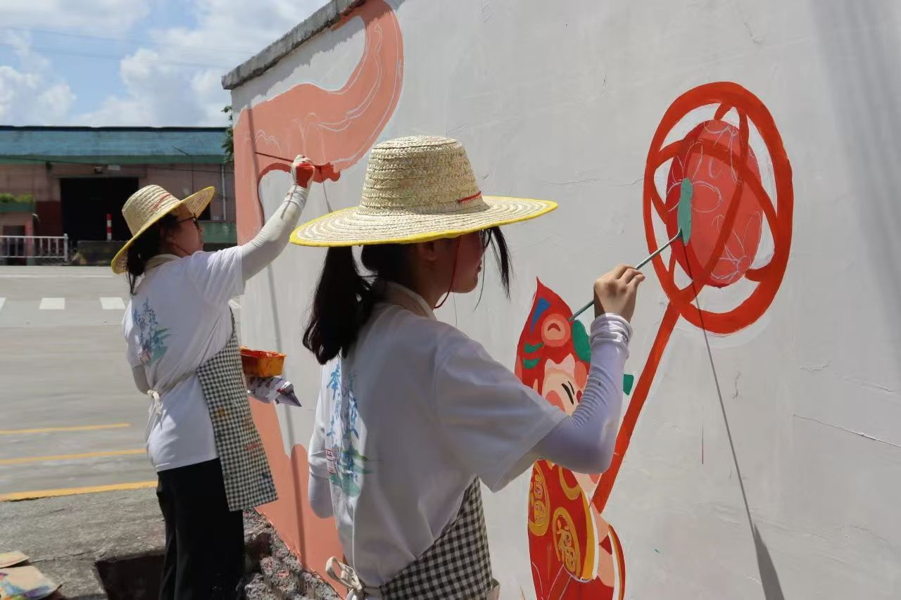 2024 年 7 月 8 日,在江门市鹤山市桃源镇钱塘村,广州华商学院的华创匠心先锋队舞龙主题、青年主题墙绘创作活动在有序地推进,为这座宁静的乡村增添了一抹文化色彩。