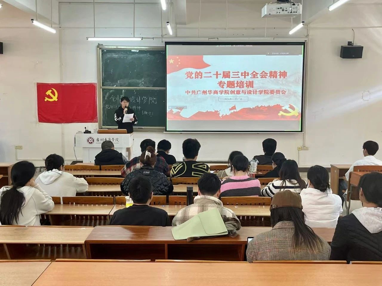 2024年12月17日下午2:30,创意与设计学院党委精心组织了全体师生党员共同学习贯彻党的二十届三中全会精神培训会。本次学习培训会由学院党委组织员廖君老师主持。
