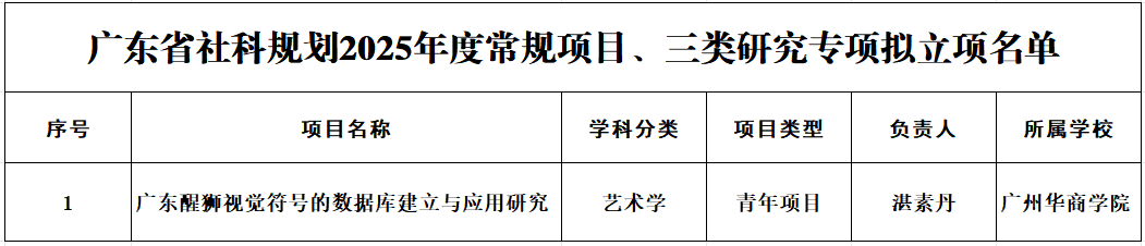 近日,根据《广东省哲学社会科学规划项目管理办法》有关规定,公示了广东省哲学社会科学规划2025年度常规项目、三类研究专项拟立项名单,我院湛素丹院助所主持的项目成功获得2025年度广东省哲学社会科学规划青年项目立项,这不仅是对我院科研实力的肯定,更是我院在科研领域取得的又一重大突破。