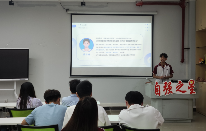 为了全面贯彻党的二十大精神,进一步做好我院的资助工作,资助家庭经济困难的优秀学生,创意与设计学院于2023年4月19日在厚德楼B101举行2023年度“自强之星”比赛,本次比赛将“立德树人”的根本任务贯穿学生资助的全过程,鼓励学生自立自强,为广大学生树立励志榜样。