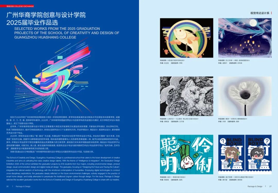 近日,华商学院创意与设计学院2025届毕业设计作品在《包装&设计》杂志第251期专版刊登,共收录8个版面、41件学生作品。在视觉传达设计系郭湘黔教授的带领下,学院师生的优秀作品已连续多期发表于该刊物。