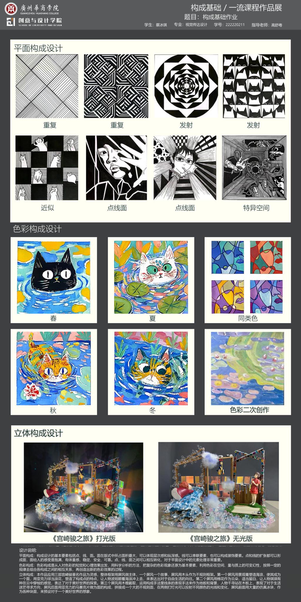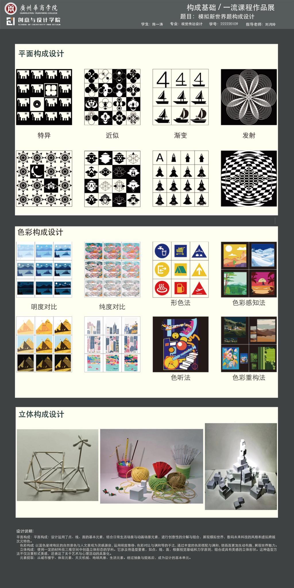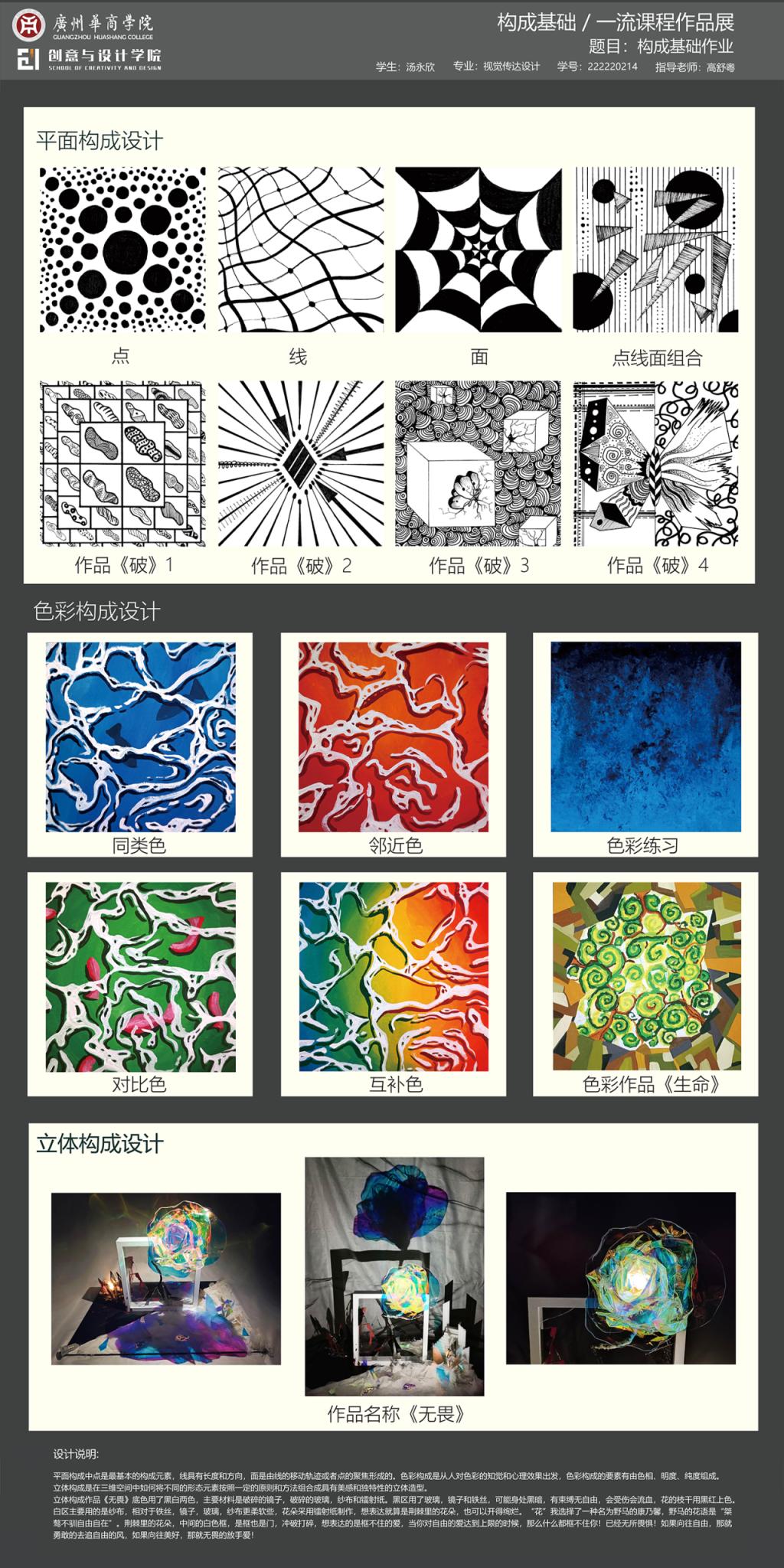 展示教学成果:通过学生的作品展示,全面呈现《构成基础》课程的教学成果,体现学生在课程学习中的收获与成长。