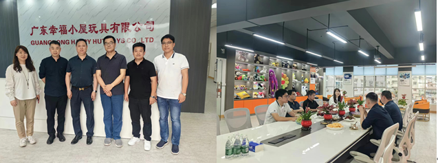随后,学院领导一行来到广东幸福小屋玩具有限公司。在走访过程中,领导们详细了解了玩具制造、玩具销售、母婴用品制造以及工艺美术品制造等多元化业务的运营情况,并对企业在产品设计和创新方面的成果给予高度评价。双方就如何结合学院教育资源与企业实际需求,共同培养具有创新精神和实践能力的设计人才进行了深入探讨。