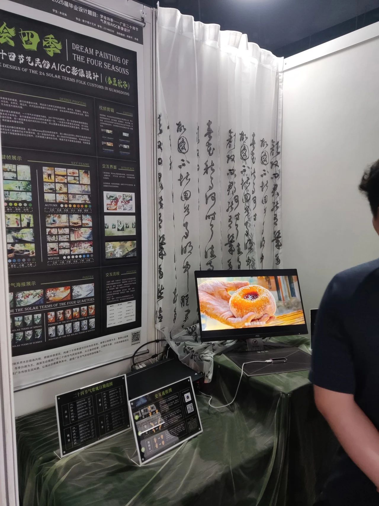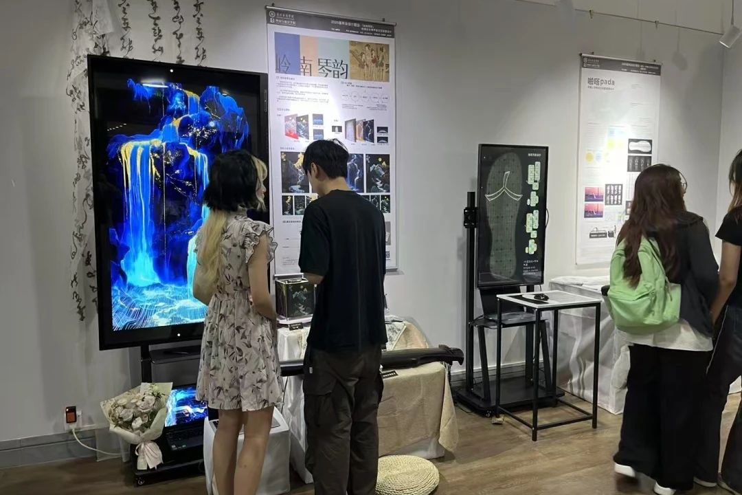 同时本届作品聚焦三大维度:以数字技术激活岭南民俗、侨乡记忆等在地文化基因,用动态捕捉、生成式艺术实现传统新生;以智能交互回应适老化服务、非遗传承等社会议题,展现青年设计者的人文担当;以前沿探索突破创作边界,AI叙事、虚拟现实等实验成果践行"技术为体、艺术为魂"的教学理念。